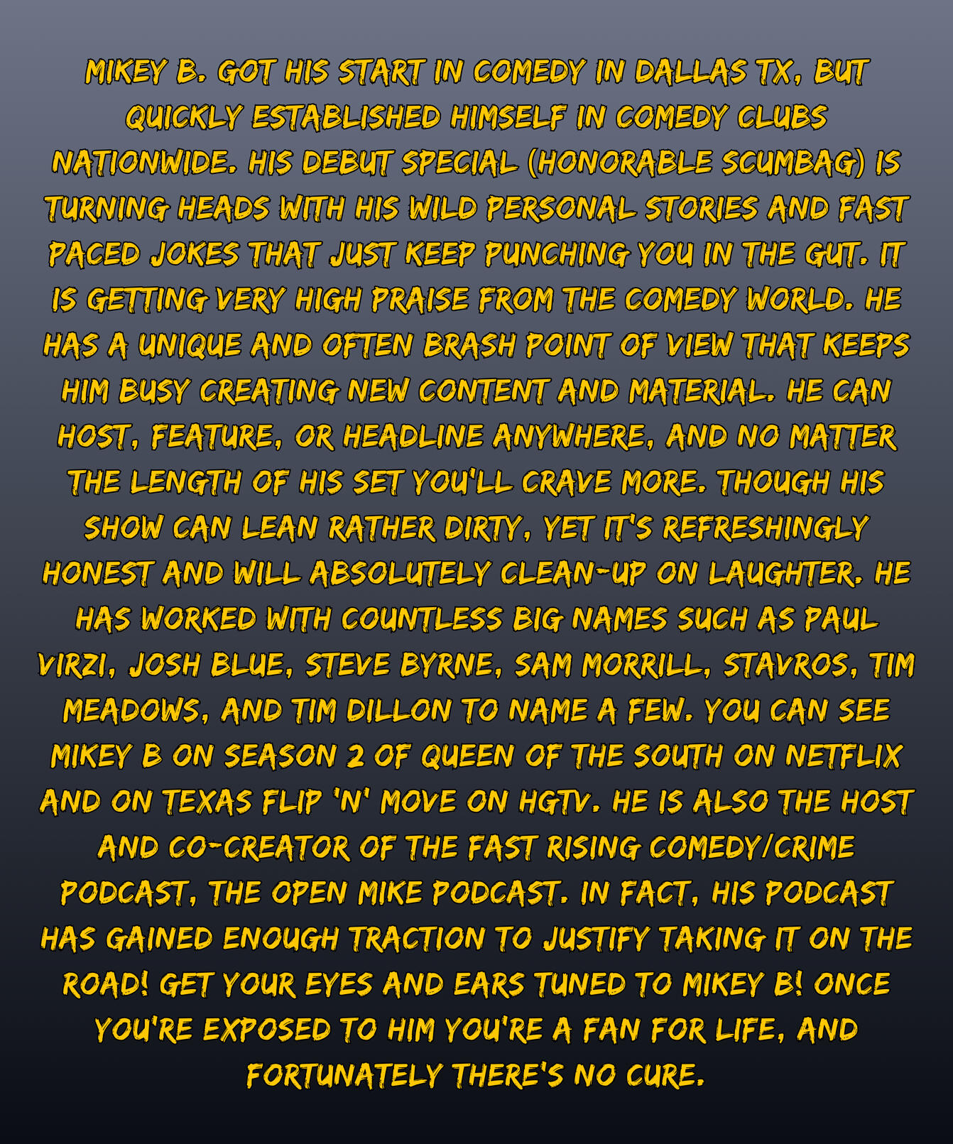 MY SPECIAL, "HONORABLE SCUMBAG" IS AVAILABLE FOR FREE ON YOUTUBE NOW!!!